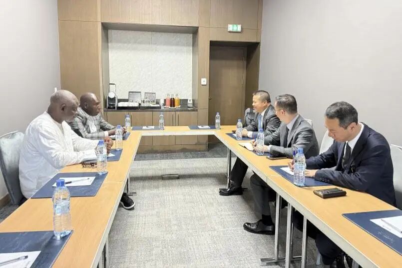11月9日,兰眉中董事长在与科特迪瓦非洲一体化部长Adama DOSSO进行会谈