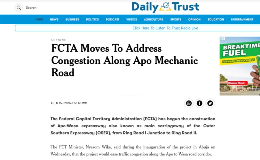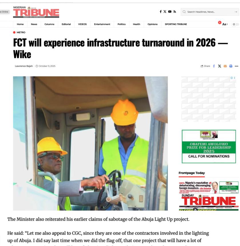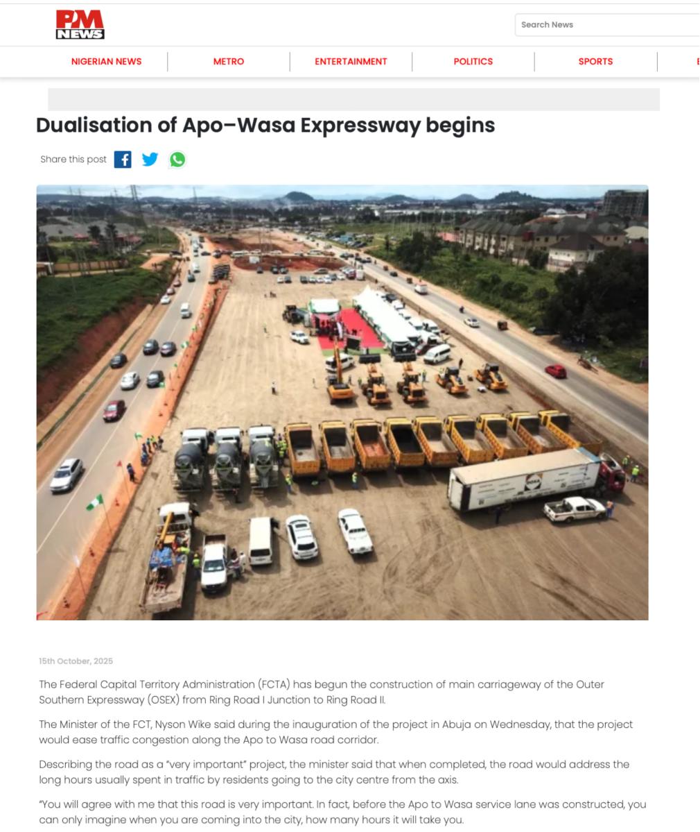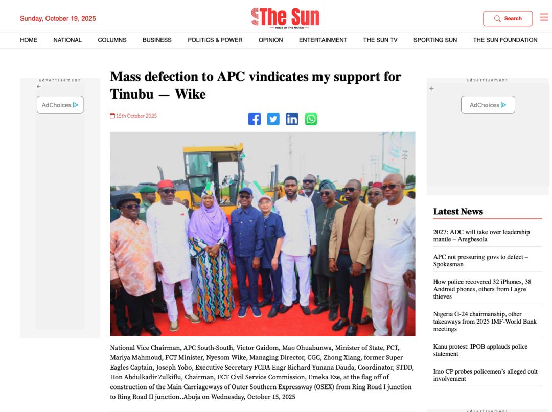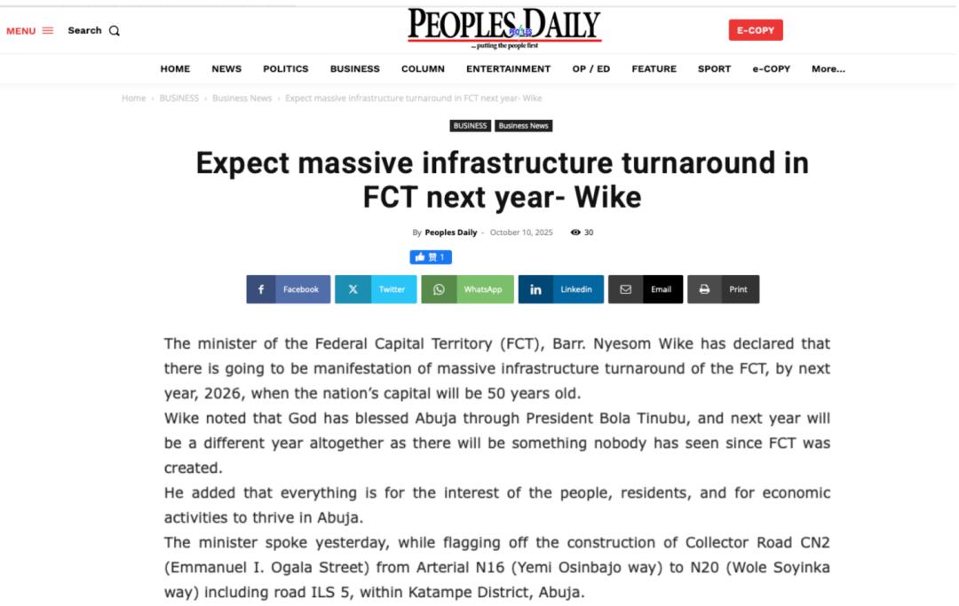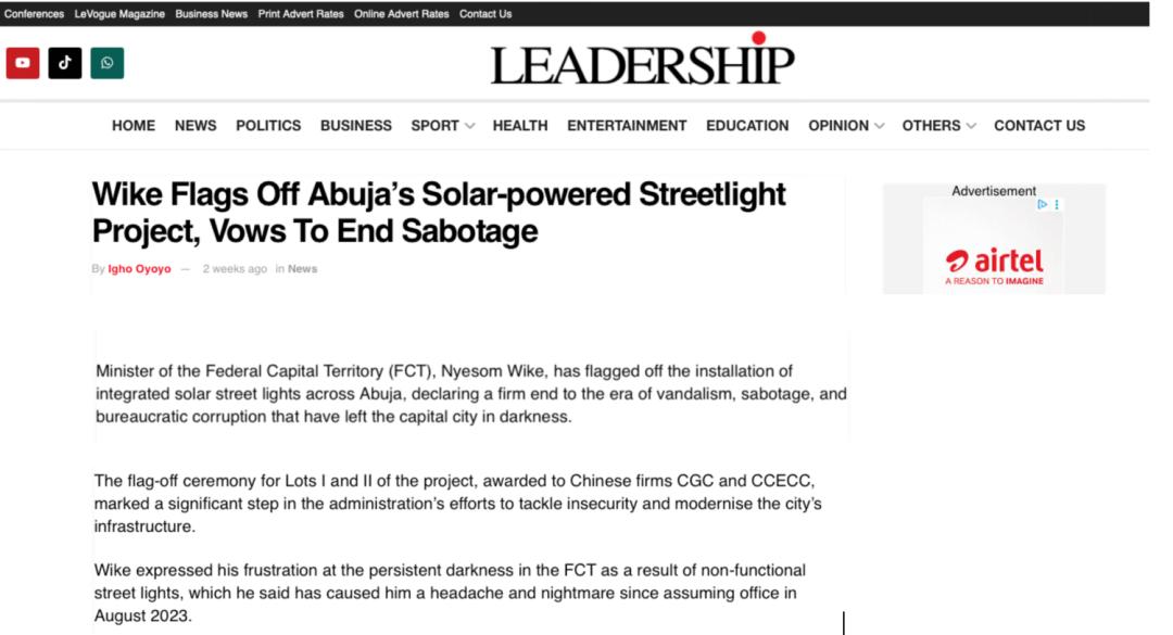 近期,尼日利亚《太阳报》(The Sun Nigeria)、《先锋报》(Vanguard)、《论坛报》(Nigerian Tribune)、TVC新闻、新闻中心电视台等主流媒体持续关注中地海外在尼开工的重点工程,通过专题报道、现场采访等形式,深度解析项目对当地经济、民生及基础设施升级的推动作用。让我们一起来回顾吧!